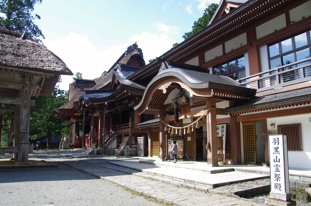 Ein Ziel, was schon lange auf der Wunschliste für Besichtigungen stand, wurde heute in Angriff genommen. Dazu ging es von Niigata mit einem Limited Express Zug nach Tsuruoka in die Präfektur Yamagata. Ab der Station ging es weiter mit dem Bus an den Fuß des Haguro-san, einem der drei heiligen Berge von Dewa Sanzan. Der Haguro-san ist zwar mit 414 Metern der niedrigste Berg von den Dreien, aber der Aufstieg über die längste Treppe Japans mit 2.446 Stufen hatte es in sich. Weniger die Anzahl der Stufen als vielmehr die ungleichmäßigen Tritthöhen und kurzen Stufenbreiten machen den Weg schwer. Gesäumt ist der Weg von riesigen Zedernbäumen. Die Bäume sind als Nationalgut von Japan eingestuft. Der Großvater der Bäume, so wurde er wirklich genannt, soll über 1.000 Jahre alt sein und hat einen Umfang von 10 Metern. Mitten zwischen den Bäumen steht eine sehr alte 5-stöckige Holzpagode. Welch ein majestätischer Anblick diese Pagode mit Namen gojuto (五重塔)! Eine erforderliche Fotosession brachte eine kleine Wanderpause. Weiter ging es bergauf. Die nächste Pause wurde eingelegt, als wir den zweiten von drei Hügeln geschafft hatten. Hier befindet sich ein Teehaus, das zur Einkehr einlud. Bei grünem Tee und süßem Gebäck genossen wir die Aussicht auf das Tal. Ein bisschen erholt, machten wir uns weiter auf den Weg zum Gipfel. Bei einem Schrein, die es immer wieder auf dem Weg gibt, hielten wir kurz an. Laut Tafel soll er beim Erfolg im Sport helfen. Also schnell die blau-weiße Fahne rausgeholt und für die Größten der Welt gebetet. Am Gipfel angekommen, bekamen wir den Sanshin-gosaiden (三山合祭殿), heutzutage ein Shinto-Schrein, zu sehen, der die Gottheiten der drei heiligen Berge beherbergt. Nach der Besichtigung machten wir uns mit dem Bus wieder auf den Rückweg zur Station, denn die 2.446 Stufen wollten wir nicht nochmal benutzen.